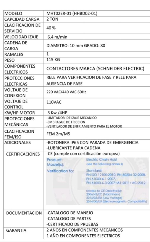 Mantenemos equipos desde 500Kg hasta 10 ton con y sin trolley eléctrico.